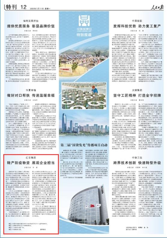《人民日報》2020年5月11日12版 版面截圖 連夜發布返工召集令;兩天將紅豆運動裝生產線改成隔離服生產線;4天時間從立項到買設備、安
