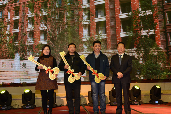 為三位高級(jí)人才代表頒發(fā)紅豆新居