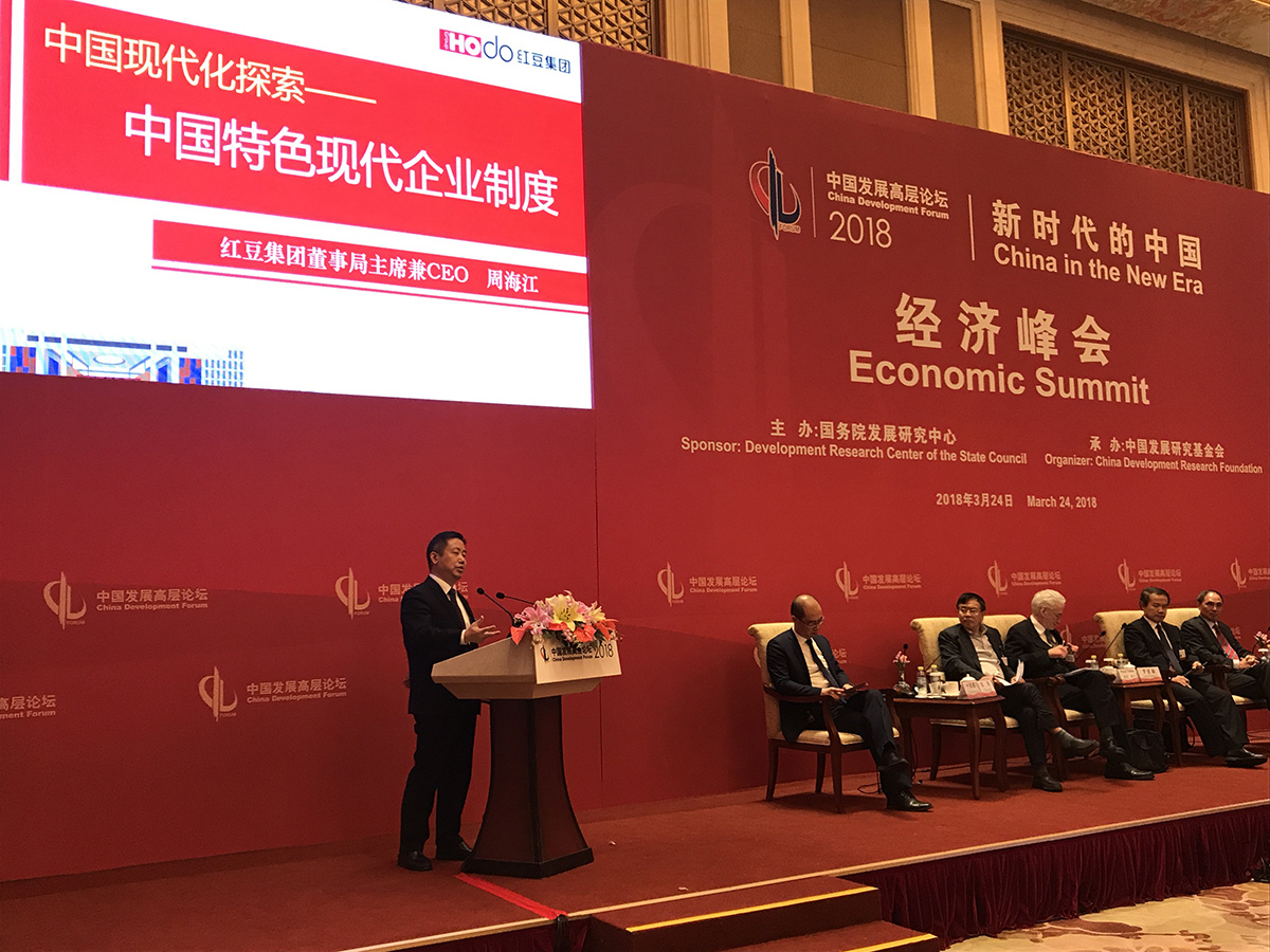 “中國共產(chǎn)黨與中國現(xiàn)代化”分組會(huì)是本次論壇的亮點(diǎn)之一,由人民網(wǎng)總裁葉蓁蓁主持,中央黨史和文獻(xiàn)研究院院務(wù)委員陳晉、劍橋大學(xué)教授彼得•諾蘭、新加坡國立大學(xué)教授鄭永年、紅豆集團(tuán)董事局主席兼CEO周海江等領(lǐng)導(dǎo)專家作了交流發(fā)言。周海江結(jié)合紅豆集團(tuán)多年來探索實(shí)踐的《中國特色現(xiàn)代企業(yè)制度》,與中外嘉賓分享了企業(yè)黨建與中國現(xiàn)代化的關(guān)系。